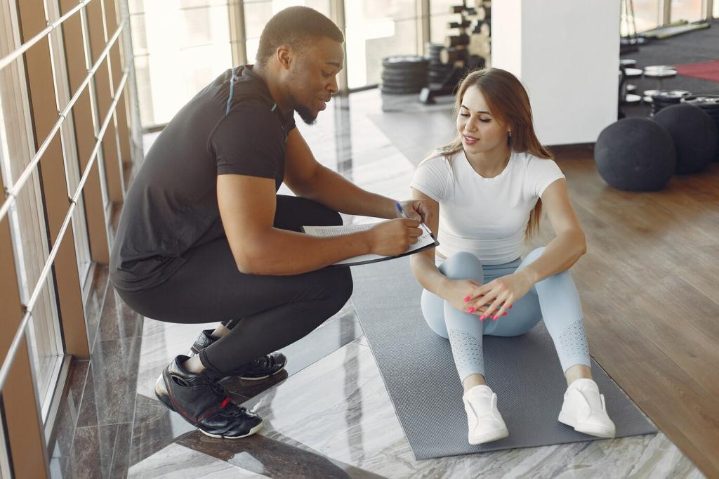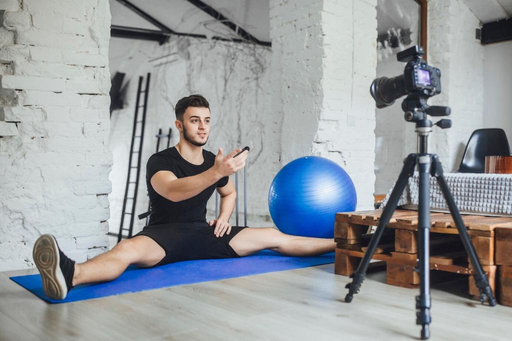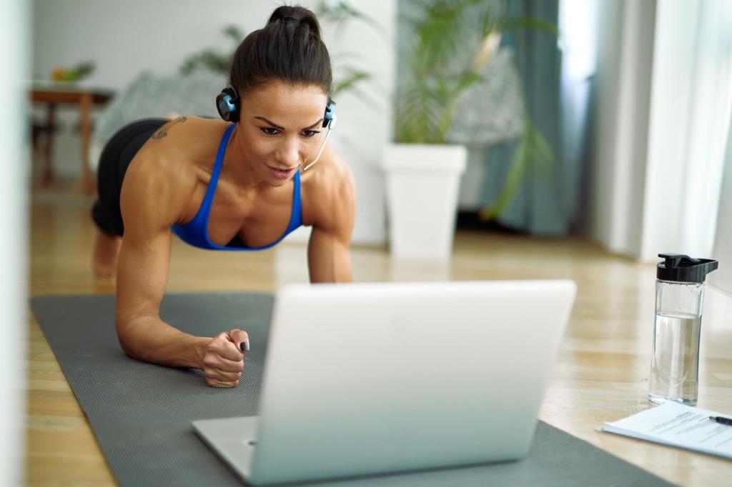 Montag, Mittwoch, Freitag je 20 Minuten: ein Zirkel aus Kniebeugen, Liegestützen, Rudern, Hüftheben und Planke. Starte moderat, nutze die RPE-Skala zur Steuerung, erhöhe alle zwei Wochen leicht. Nach zwölf Wochen spürst du klare Fortschritte. Abonniere für eine druckbare Vorlage und periodisierte Varianten.